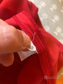 Bellissimo abito rosso smanicato tipo canotta con colletto. Tg 48. Cerniera sul fianco. Longhette con spacco cm 35