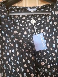 Abito longuette vintage Laura Conti 100% viscosa tagliato in sbieco, veste dalla 42 alla 46. lungo cm 129. Scollo a V, Piccola ruche da un lato, laccetti per legarlo dietro. Mai usato, con cartellino. Blu con fiorellini azzurri e beige