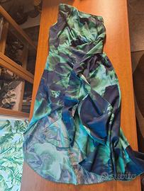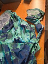 Vestito lungo monospalla elegante. 🥂 Perfetto per cerimonie, serate eleganti, feste e compleanni! ✨️ Mai indossato perché non di mio gusto. 📏 Taglia S (40 italiana). 🧶 Tessuto leggero, unico strato (senza fodera). Composizione: 95% poliestere, 5% elastane. 🌸🎨 Stampa fantasia floreale verde, blu e azzurra: i fiori sono talmente grandi da sembrare macchie, quindi creano un effetto interessante ed enigmatico. - Wrap dress (vestito a portafoglio): la gonna viene chiusa annodando sul davanti i due lembi di tessuto più lunghi che sono cuciti addosso. - Chiusura anche con zip posteriore. ‼️🧍♀️La persona in foto è alta circa 160 cm (senza tacchi), il che significa che a una persona alta 170 cm il vestito arriverà appena sotto il ginocchio. 🫧 Capi lavati e igienizzati prima della spedizione. 🚚 Spedizione rapida o scambio a mano a Reggio Calabria. 📩 Scrivimi per altre foto o informazioni!