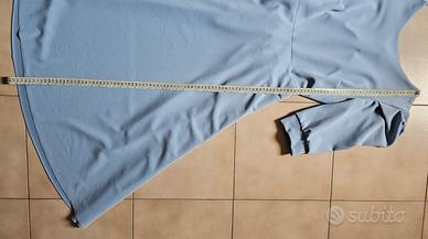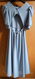 Abito lounguette, nuovo mai ndossato con scollo ovale sulla schiena e chiusura con 4 bottoncini. Maniche a sbuffo, taglia 42/44. Made in italy.
