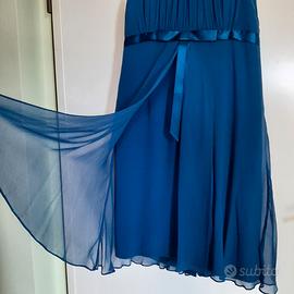 Abito elegante Luisa Spagnoli da sera o cerimonia, blu cobalto, taglia 46, indossato 3 volte, 100% seta, due strati, (voille di seta anche lo strato esterno), fodera acetato. Più foto a richiesta.
