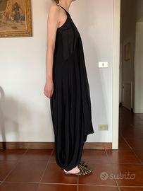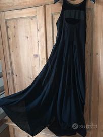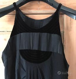 Splendido abito vestito lungo drappeggiato originale Antonio Marras PRIMA LINEA taglia 40/S ( la modella ha una taglia 42/44) colore nero, per 80% lana, poi viscosa, con inserti in velluto e cotone.