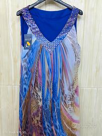 Splendido abito lungo da donna, nuovo con cartellino, perfetto per la stagione estiva o per una cerimonia informale. Un capo che unisce eleganza e comfort, caratterizzato da un gioco di trasparenze e stampe di tendenza.