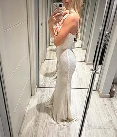 Abito nuovo mai utilizzato made in Italy, abito per occasioni speciali lungo bianco completamente rivestito da paillettes, alta qualità, aderente scollato a forma sirena con strascico