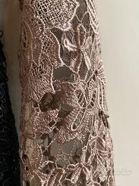 La sua unicità è racchiusa nella lavorazione del pizzo guipure con motivo floreale con fodera interna ton sur ton.