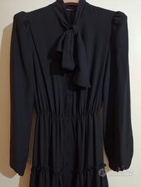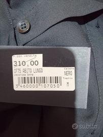 Abito lungo nero, tessuto poliestere tipo chiffon, modello tutto abbottonato davanti con elastico in vita e ai polsi. Sciarpa al collo che si annoda a fiocco. Tg M morbida. Foderato fino al ginocchio. Acquistato per un evento ma mai indossato per cambio outfit. Chiedere le informazione volute ma Non lo indosso per richiesta di foto. Aggiungere spedizione