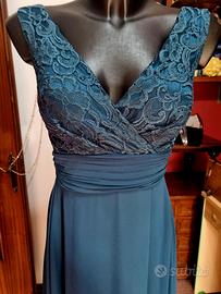 abito lungo da cerimonia con corpino in pizzo foderato con spacco e grazioso corpino in pizzo spalla.larga ottima vestibilità
