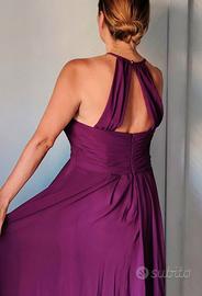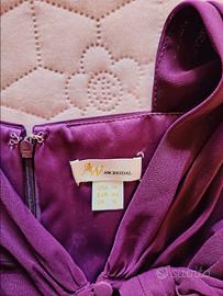 Bellissimo abito donna color viola intenso, lungo, elegante, AW Bridal, usato solo per shooting fotografico. Morbido, leggero, vestibilità massima, coppe interne. La misura 44 EU di AW Bridal é adatta a taglie 44/46 con seno abbondante e a donne con altezza da 1,65 m.