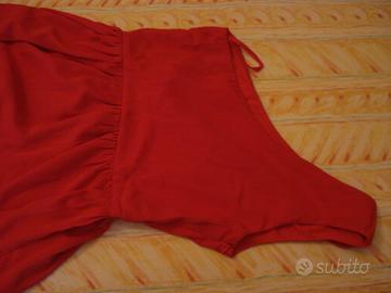 Abito lungo con spacco lungo la coscia sinistra, monospalla, color rosso sangue. nuovo mai usato. vendo x acquisto di taglia sbagliata. non foderato, non trasparente. in chiffon. con cintura dello stesso tessuto TAGLIA S / IT 40 / EU 36