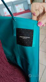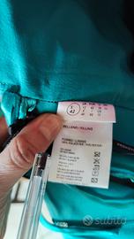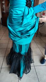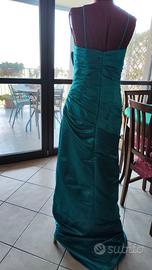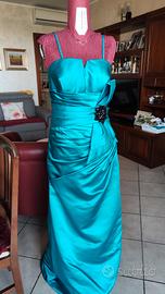 colore azzurro intenso tendente al verde, molto elegante, con coppe seno e sottogonna, indossato una sola volta per una cerimonia