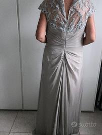 Abito lungo da cerimonia con ricami e paillettes, usato solo un giorno ad un matrimonio, come nuovo, colore taupe (colore della foto con vestito indossato). Taglia 48-50, foderato.