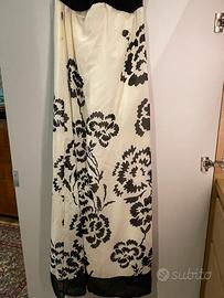 Abito lungo donna motivo floreale nero su fondo crema, con pettorina nera che accentua la femminilita. Tessuto leggero e morbido.
