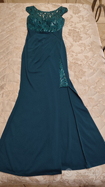 Bellissimo abito lungo per cerimonie colore verde petrolio. Taglia EU38 - ideale per una taglia S, marchio Lipsy. Molto elegante e raffinato, vestibilità aderente, bellissimo addosso.