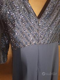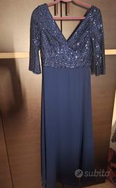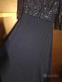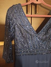 Abito lungo elegante blu scuro paillettes scollo V