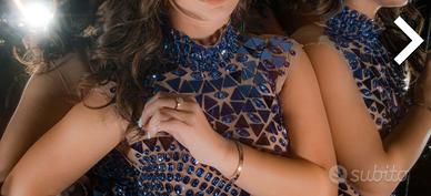 Abito elegante con specchi e diamantini blu, praticamente nuovo, utilizzato una sola volta. la taglia e una 40/42. Il prezzo è trattabile.