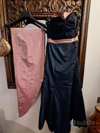 Indossato solo una volta in occasione di un matrimonio come testimone della sposa. Dotato di piccolo strascico che nella parte terminale, presenta piccoli segni di usura, dovuti a buchi fatti con il tacco a spillo sopra al prato. Ma comunque conservato in ottime condizioni. Dotata di mantellina doubleface. Abito pagato 750€