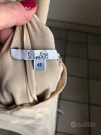 Abito donna estivo elegante spalline sottilissime ed incrocio sulla schiena brand Silk and Soie taglia 42 colore beige