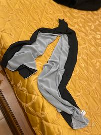 Abito lungo elegante con coprispalle. Nero e grigio con spacco laterale. Ideale per serate eleganti o cerimonie. Allacciatura con zip nella schiena