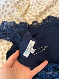 Abito lungo da cerimonia ricamato e con paillettes, foderato. Spalle scoperte. Marca Goddiva Taglia XXL 48 Nuovo con cartellino