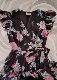 Abito lungo estivo in velo foderato fondo nero e fiori rosa con gonna plissettata. Etichetta taglia 32 Europa. Spedisco