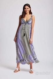 Abito fresco e leggero, lungo con spalline dal motivo geometrico, Taglia M - mai indossato. Ideale per una passeggiata serale al mare o in città. Corpetto aderente e scollo a V . La gonna lunga con balza e il cordoncino regolabile offrono una vestibilità comoda e un look raffinato. Esattamente come in foto! Vendo a prezzo di vero affare.