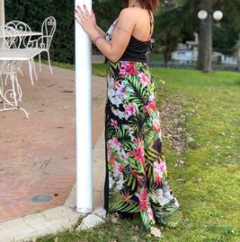 Vendo abito lungo con fiori, davanti è aperto e corto e dietro lungo.