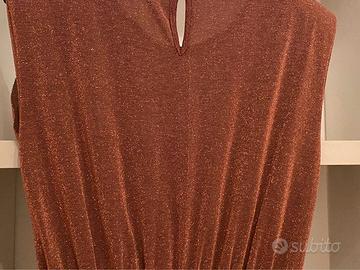 Abito lungo in lurex nuovo, mai indossato. Taglia unica, spalline imbottite removibili, spacco centrale.