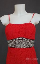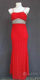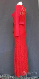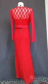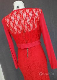 Abito colore rosso Size S.JENNY pronto moda.Condizioni ottime, usato una volta.95%poliestere -5% elastane.Parte esterna interamente in pizzo, interamente foderato in 100% poliestere.Completo di bolerino. Misure Abito statiche: -Ascelle 45cmx2 -Vita 37cmx2 -Fianchi 50cmx2 -lunghezza senza bretelle che sono regolabili 140cm -Misure bolerino: -Spalle 40cmx2 -Ascelle 50cmx2 -lunghezza 35cm -Maniche 60cm