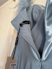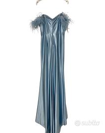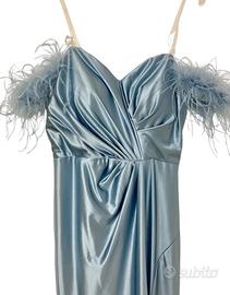 Abito cerimonia a sirena mai indossato. Spacco laterale, strascico, spalline in silicone rimovibili, maniche in piume scese. Taglia M/L 42/44 Prezzo trattabile