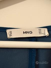 abito lungo di un bellissimo color blu, abito da sera o da cerimonia, taglia L, vestibilità morbida, marchio MANGO.