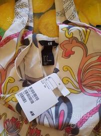 Vendo spettacolare abito lungo dalla forma asimmetrica bianco con decori floreali rosa, grigio, giallo e pesca MAI USATO. Ce l'ho identico ed è uno dei miei vestiti preferiti. L'ho comprato uguale come regalo per mia cugina, ma ho fatto l'errore di prenderle la mia stessa misura e lei porta una taglia in più. Purtroppo non è stato possibile cambiarlo perché il termine consentito per farlo era scaduto. C'è ancora l'etichetta attaccata, come visibile in foto. Misura 36, corrispondente ad una 40 (S) italiana. Marca H&M. Pagamento e ritiro a domicilio, Messina città. Possibilità di consegna anche su Milano, con tempi un pò più lunghi.