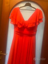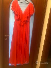 Abito lungo color corallo indossato una sola volta per matrimonio con vola ‘ avanti e indietro , coppette inserite taglia 44 con stola , pagato 250 € lo cedo per 80€