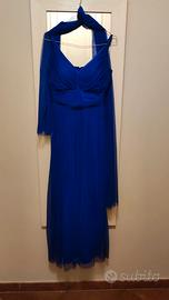 Abito lungo blu elettrico con stola taglia 42