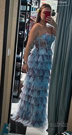 Vendo abito cerimonia azzurro/lilla con bustino scollo a cuore MESSO SOLO 1 VOLTA PER UN MATRIMONIO VERAMENTE NUOVO portato anche in lavanderia Taglia M ma va bene anche per una L