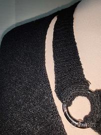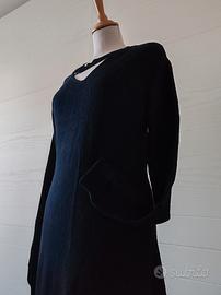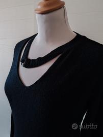 Abito lungo nero in maglia elasticizzata con motivo al collo, avvolgente, taglia M di Combipel, lunghezza dietro dal centro cm 125,