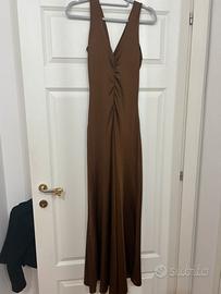 Abito lungo marrone Nuna Lie, taglia S, indossato una sola volta. Piccoli difetti in foto.