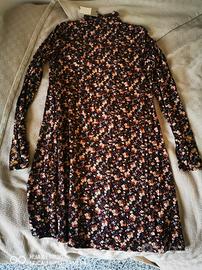 Abito casual, fantasia a fiorellini, manica lunga. Collo alla coreana.