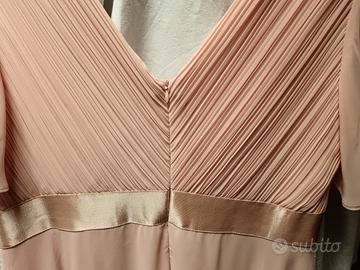 completamente foderato,quindi non trasparente!Maniche a campana,zip dietro.Lungo cm 138 dallo scollo a V.Spalle cm 40.Tg L