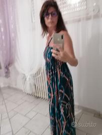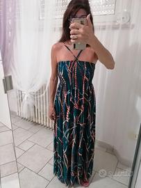 Abito estivo lungo colore ottanio fantasia con bellissima scollatura taglia unica