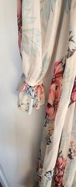 Si tratta di un abito lungo floreale, leggero, con maniche lunghe velate e polsino elasticizzato. L'abito include una sottoveste ed è ideale per cerimonie. vita elasticizzata È stato indossato una sola volta. taglia M