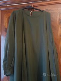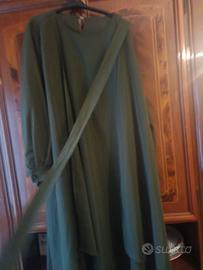 Bellissimo abito lungo in color verde oliva/militare, caratterizzato da un particolare design a doppio strato sul davanti che dona movimento al capo. Realizzato in tessuto leggero e confortevole , ha uno scollo rotondo e maniche lunghe con polsini rifiniti. Perfetto per un look sobrio quotidiano
