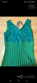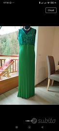 Abito stupendo, scivola sul corpo, gonna lunga plissettata e parte sopra ricamata e decorata con paillettes. Cerniera nascosta laterale. Dettagli curati Marchio di ottimo livello Exsy. Semplicemente un meraviglioso bijoux! Taglia 44, ma verificate le misure, perché veste anche più grande Acquistato per un'occasione a 198 euro e mai usato Misure: Ascella ascella circa 48 cm Vita cm 44,5 / 45