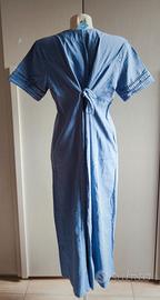 Abito lungo viola con bottoni in legno e ricami