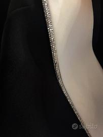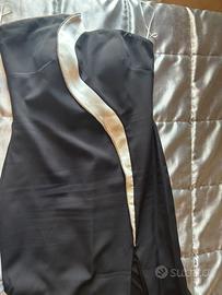 Abito nero lungo con strascico e motivo bianco davanti sul petto con strass Valore di acquisto 600 Vendo 350
