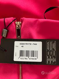 Abito corto color fucsia taglia 42, senza maniche con zip sulla schiena e allacciatura dietro al collo. Particolare le zone nudo sui fianchi. Adatto per occasioni e cene estive.
