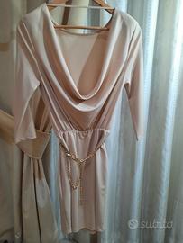 Abito Brand Marciano Guess colore beige taglia 38/40 morbidissimo stretching, collo drappeggiato e cintura gioiello color oro con logo Ottimo stato