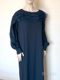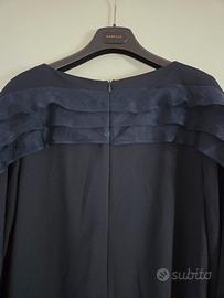 Abito Marina Rinaldi, colore blu notte con zip posteriore e frange. Mai utilizzato, ancora nuovo con cartellino.