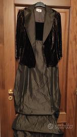Vendo bellissimo abito mai utilizzato in velluto e raso marrone compreso di giacca