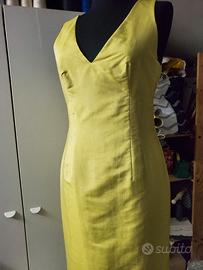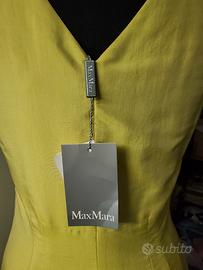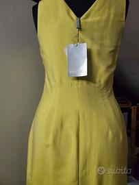 Abito Max Mara nuovo con etichetta e cartellino taglia 40 in shantung di seta 100% color giallo/verde acido foderato in viscosa 100% zip laterale e spacco dietro, lunghezza sotto il ginocchio