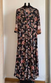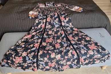 Splendido abito lungo a camicia (chemisier) del brand Desigual, modello Erdenet. 👗 Il capo è nuovo, mai indossato, parte del nostro guardaroba di famiglia. Si distingue per la raffinata stampa floreale e gli eleganti inserti in pizzo nero che slanciano la figura. 🔹 Caratteristiche principali: •Tessuto: 100% viscosa di alta qualità, incredibilmente morbida e fresca, ideale per l'estate. •Stile versatile: Chiusura frontale con bottoni nascosti. Può essere indossato come abito o aperto come un raffinato spolverino leggero sopra jeans e top. •Dettagli: Maniche a 3/4, tasche laterali funzionali, silhouette fluida e femminile. 🔹 Misure (prese in piano): •Spalle: 38 cm •Seno: 47 cm •Vita (fissa): 39 cm •Fianchi: 60-61 cm •Lunghezza: 131 cm 🔹 Condizioni: Nuovo, perfetto. Da ambiente senza fumo. Spedizione: Disponibile tramite TuttoSubito.
